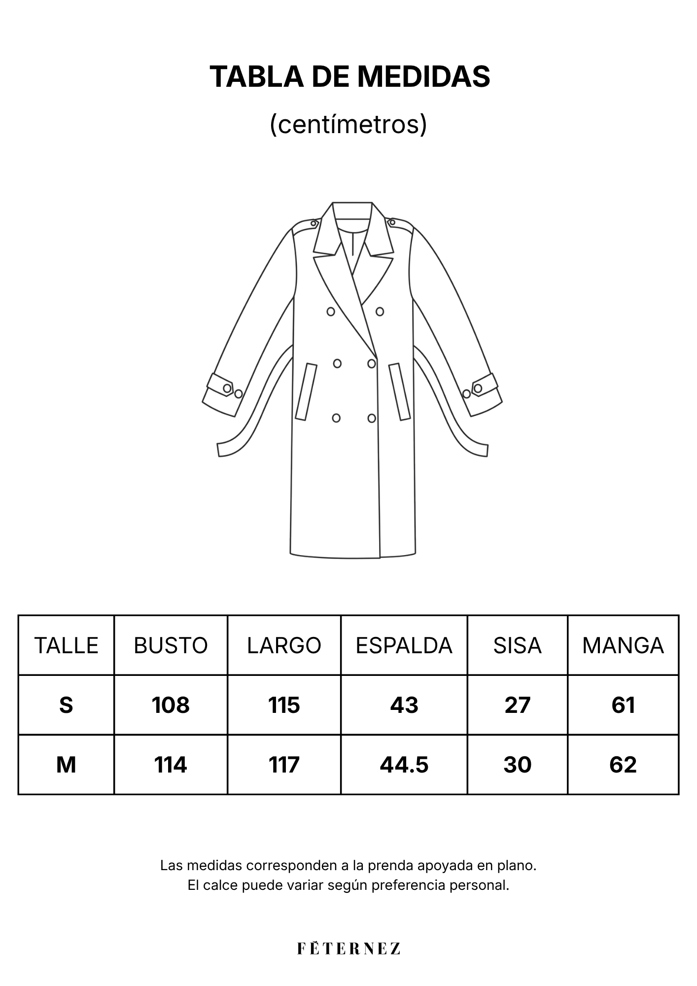 Trench largo con cuello solapa y cuello convertible con cierre de tres botones estilo funnel neck. Manga larga con trabilla, presilla y botón. Charreteras abotonadas en hombros. Bolsillos delanteros. Cierre frontal cruzado con diez botones. Cinturón ajustable con hebilla. Canesú de lluvia en espalda. Interior forrado.